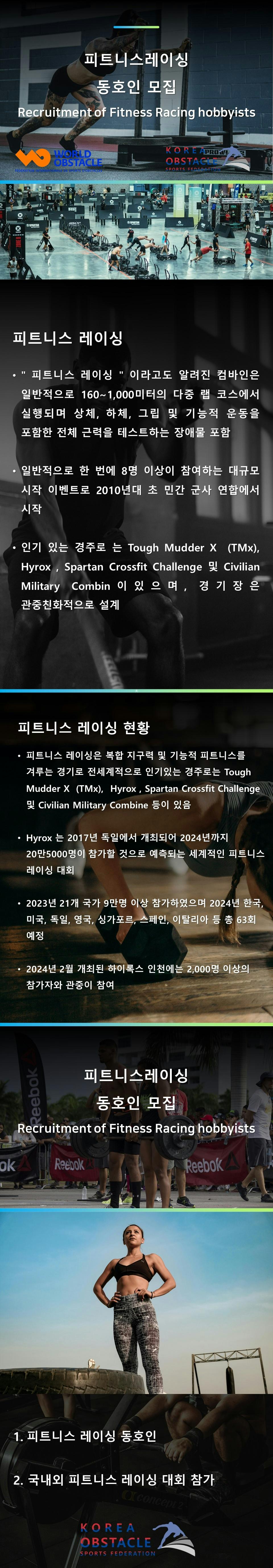 1. " 피트니스 레이싱 " 이라고도 알려진 컴바인은 일반적으로 160~1,000미터의 다중 랩 코스에서 실행되며 상체, 하체, 그립 및 기능적 운동을 포함한 전체 근력을 테스트하는 장애물 포함